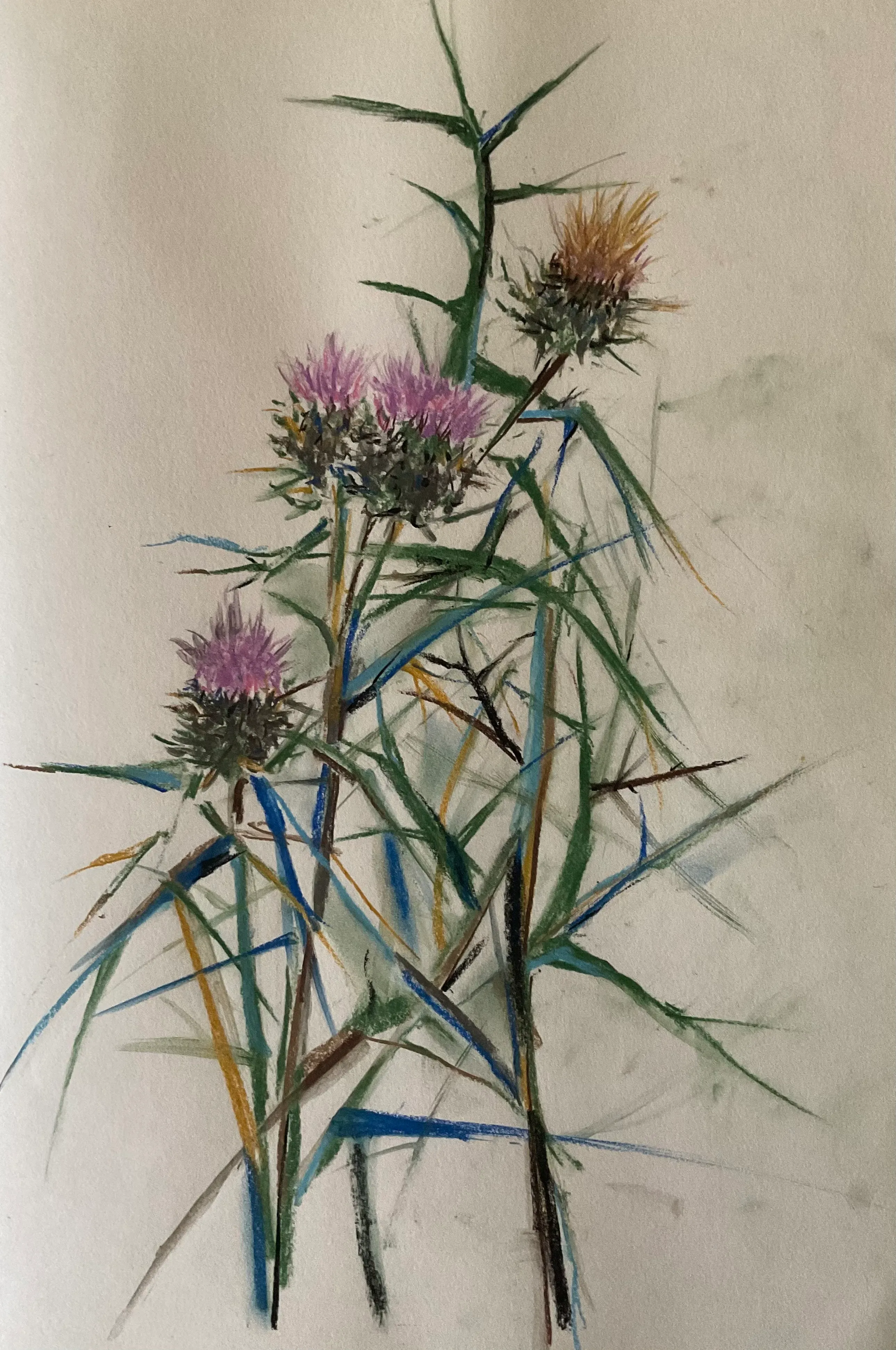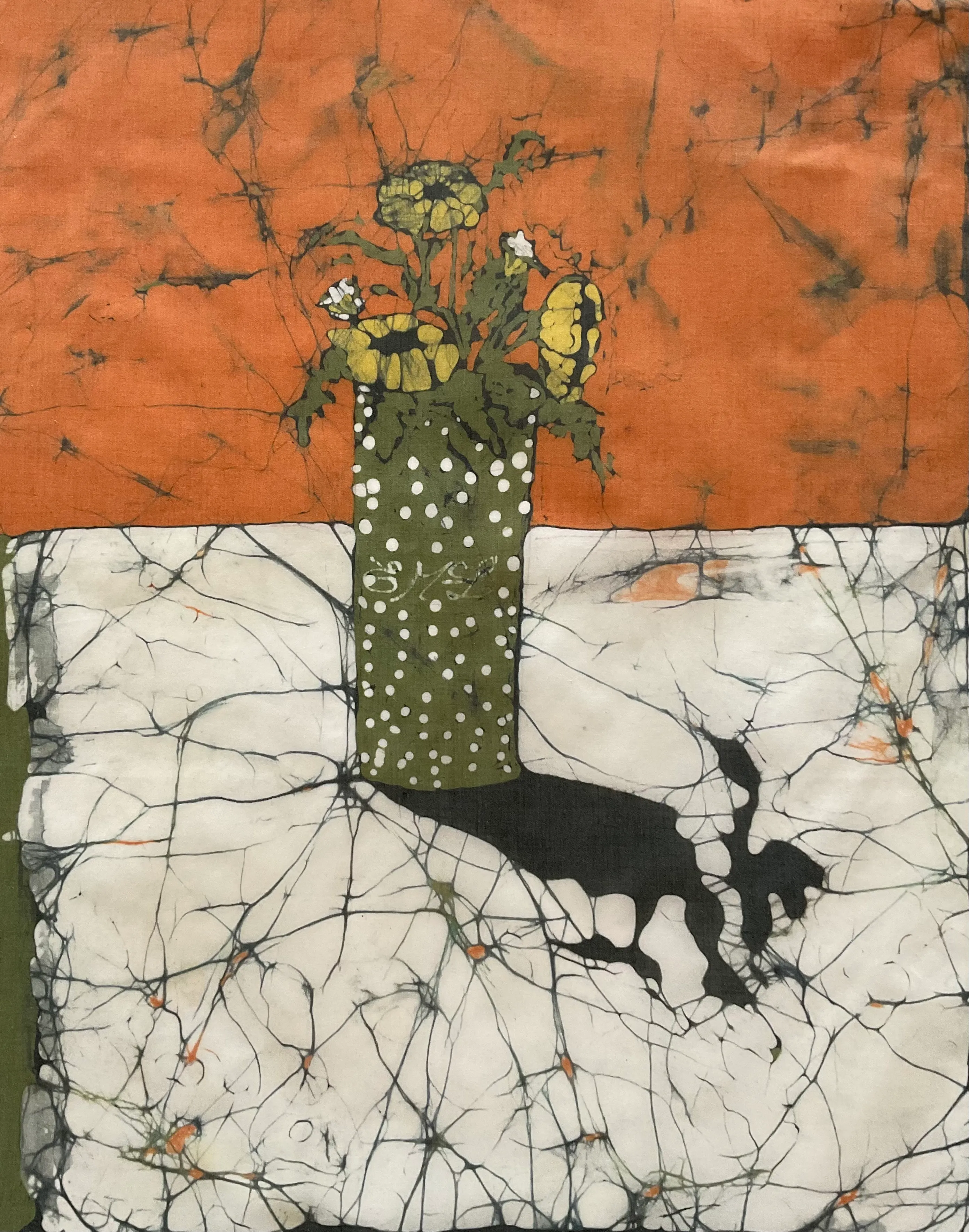 Working in oil, watercolour, pastel and batik, her images display the beauty of nature from Winter in it’s nakedness and strength - to the fleeting delicacy of Summer and it’s fruits.