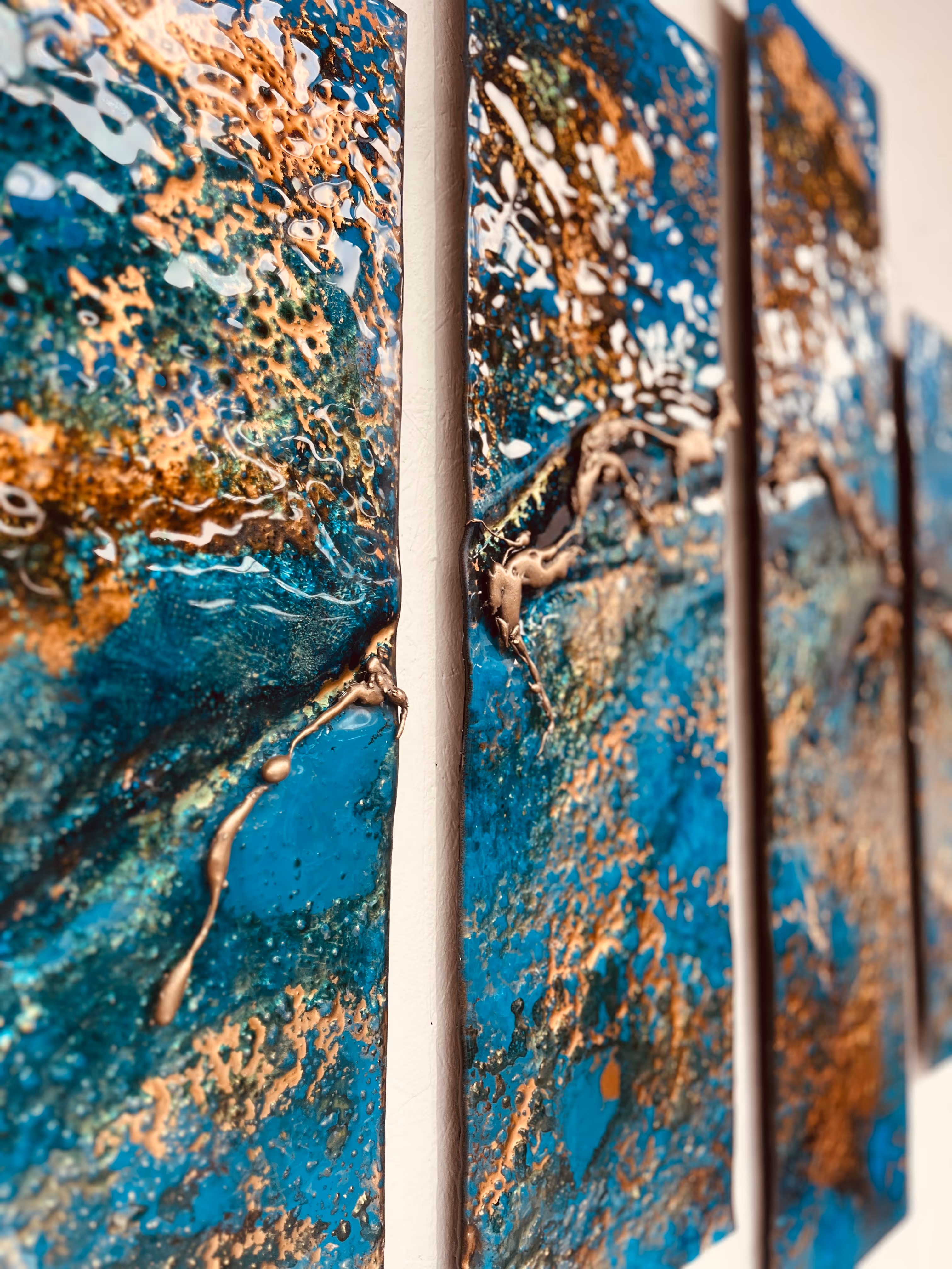 She is now back with such enthusiasm and inspiration creating a variety of artworks. She specialises in landscape paintings but cast glass pieces have become a new inspiration for her, from years of working in tandem with her husband Eoin.