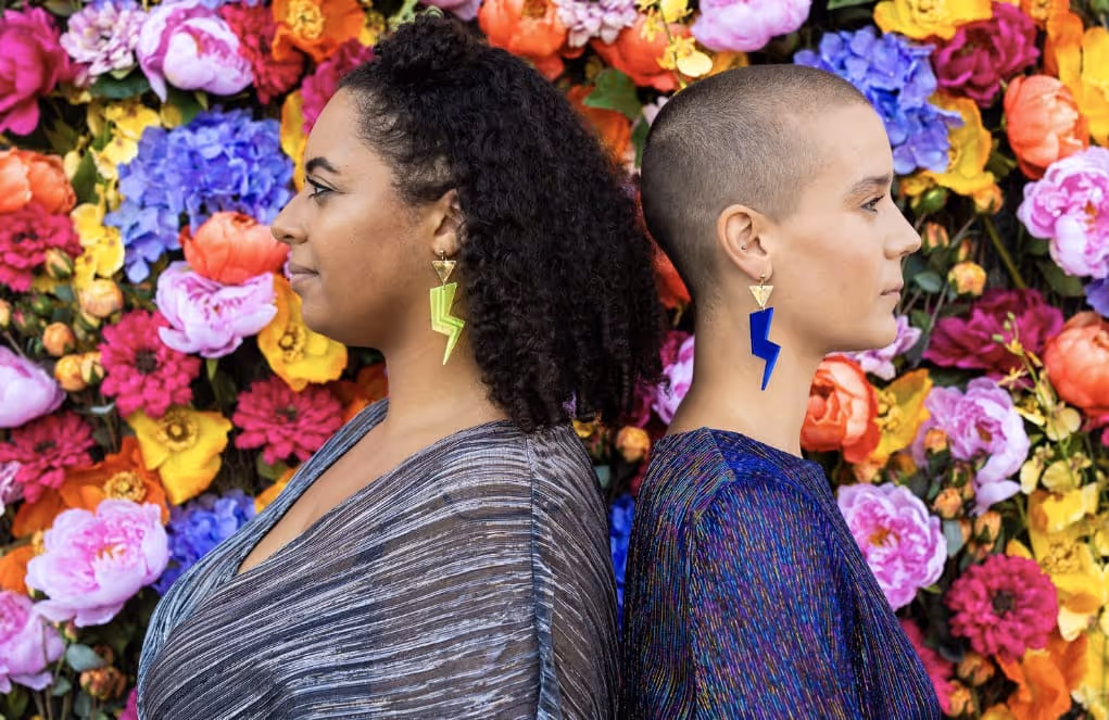 Designer and maker of laser cut acrylic jewellery using greencast acrylics, lots of neon brights and big dangly earrings and statement necklaces. They also make headbands from vintage fabric and organic cotton fabric