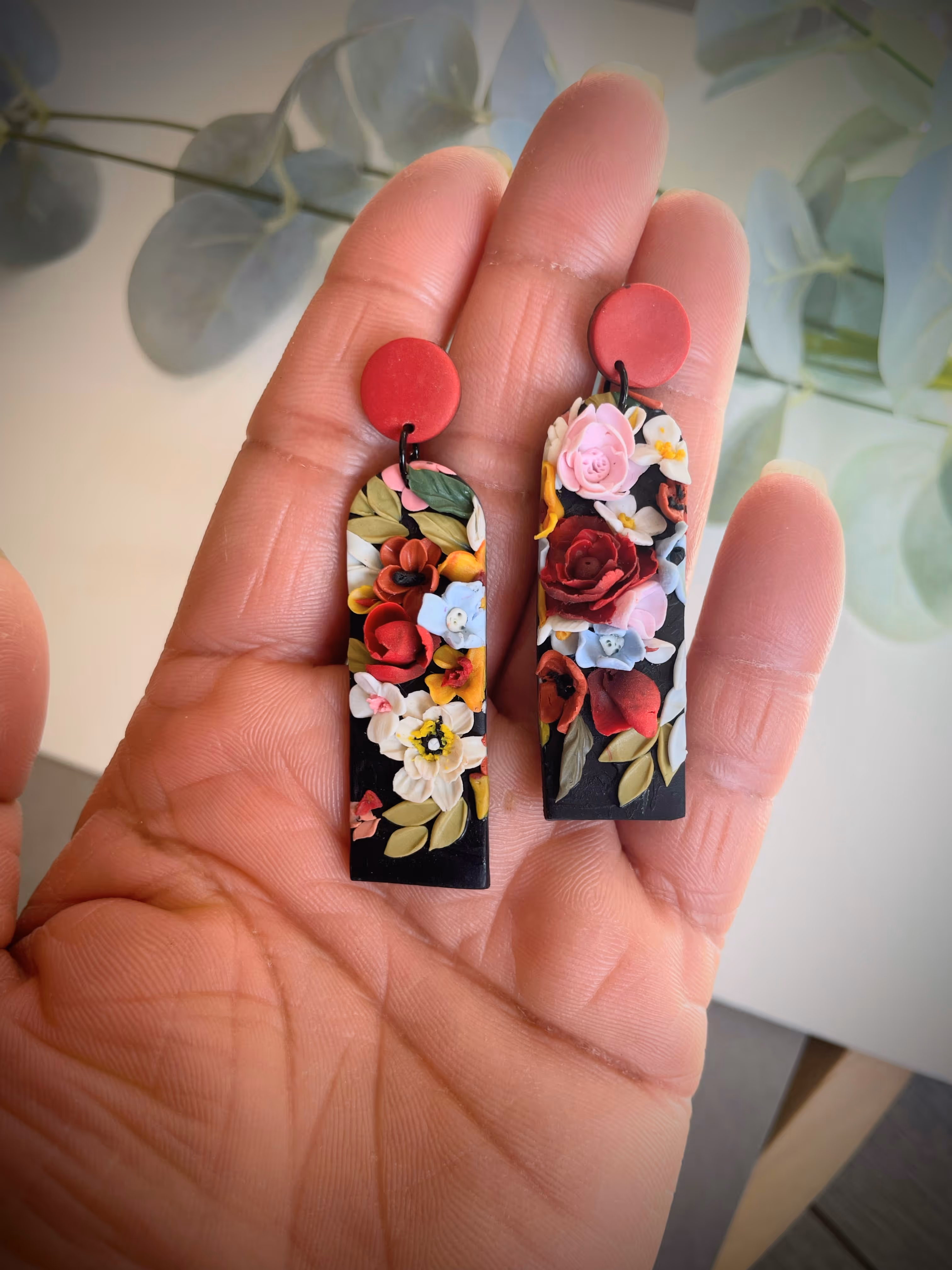 Polymer clay and resin, real flowers handmade jewellery.